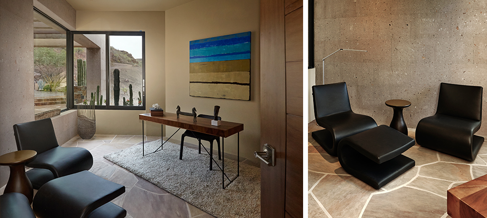 This winding beach house in the Southern half of the Baja Peninsula hosts an impressive collection of Poliform and Varenna that acknowledges the local materials and finishes as well as the regional precedent of Architect Luis Barragan. Spessart Oak, Cenere Oak, and Matte Castoro cabinetry required intense customization maintain the varied curves of the poured concrete spiral walls, while Poliform furniture mixed comfort with vivid colors and rough textures.